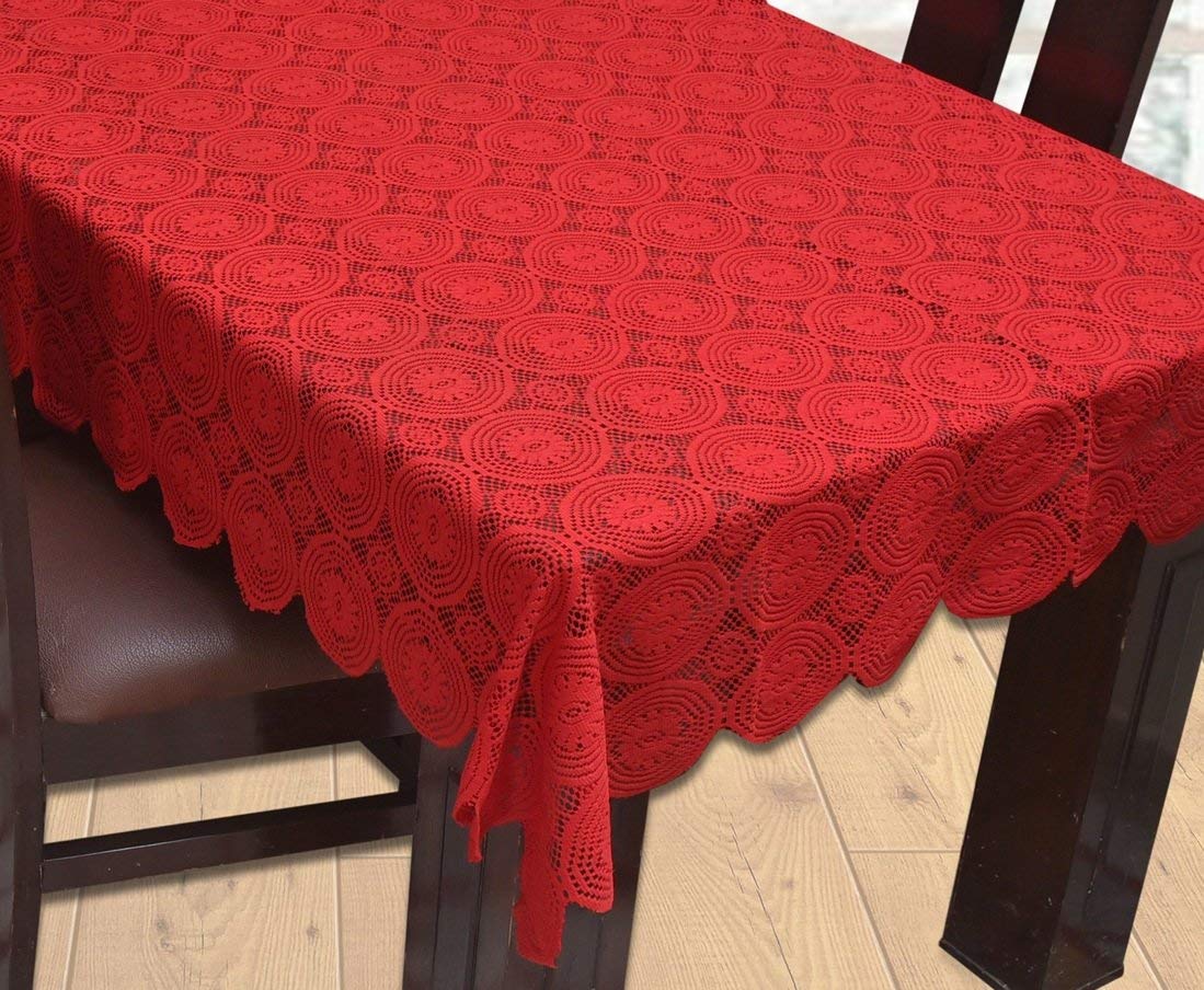Weavers Villa Floral Cotton Net Rectangular 6 Seater Dining Table Cover (60x90 Inches, Pack of 1)